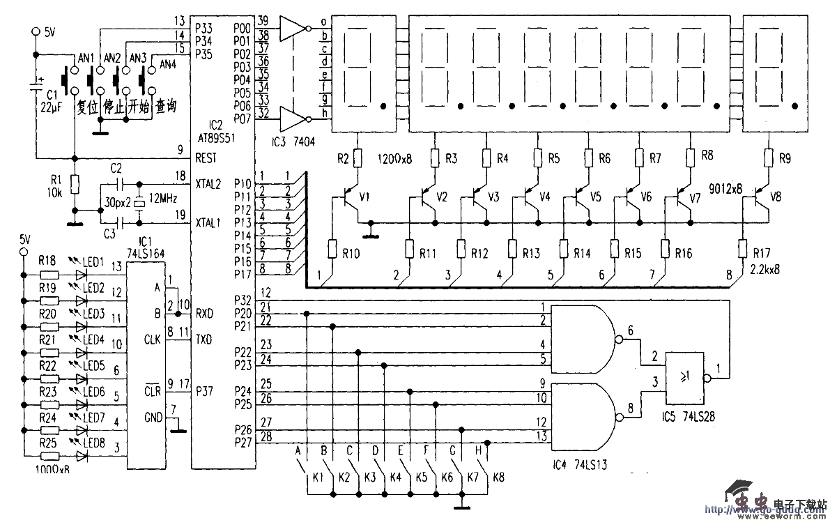 用单片机组成的游泳自动计时装置电路