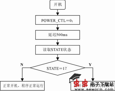 MPU延迟后读取STATE引脚的状态。如果此时STATE为低电平,则确认Q1导通,S1曾按下,确认用户开机程序正常运行。如果此时STATE为高电平,则表明Q1截止,开机信号为误动作,程序执行关机程序。