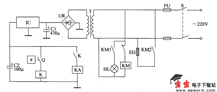该养殖场用恒温控制器电路由电源电路和恒温控制电路组成,如图所示。