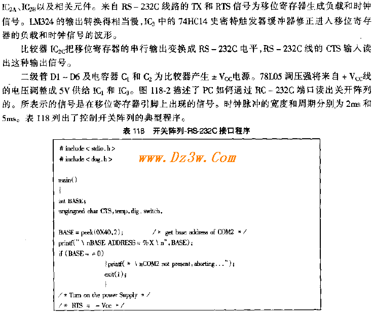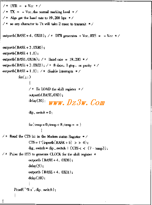 下图所示电路代提供了一种远程菜单选择的开关阵列。它将一只线性的8位开关连接到串口,RS232信号引脚可为电路提供经济的电源并可以很方便地改进这电路配置,以便能读出更多的开关输入。此电路的核心是一只74HC165 8位串行输出移位寄存器。重要的是,你可以使用这种寄存器或者使用来自低功耗IC系列的类似器件。移动寄存器具有能够接受8位DIP开关阵列的驱动信号的8个并行输人脚。