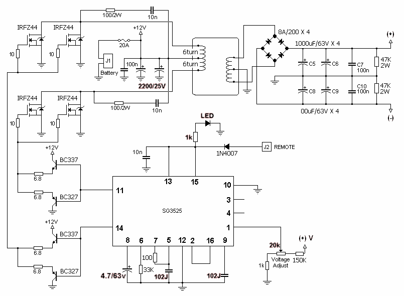 SG3525组成的正负50V输出,450W瓦电源电路