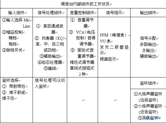 1.多个输入通路,至少十几路,多的已达几十路,以满足多传声器拾音的需要。可以把各种(组)乐器和各个声部的信号记录到多轨磁带上,后期制作时进行音质加工和声象分配,以便精雕细刻。