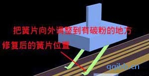 把簧片向两边调整到有碳粉的地方,使簧片能和其有良好的接触,这一点非常重要,擦一点点缝纫机油。装回原处。