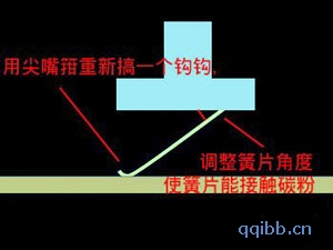 自己动手再做一个钩钩,并用沙纸磨好,调整好簧片角度。