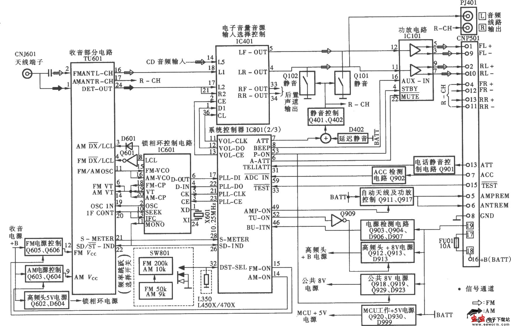 SONY CDX-LA70X型汽车音响收音高频头与音频放大电路