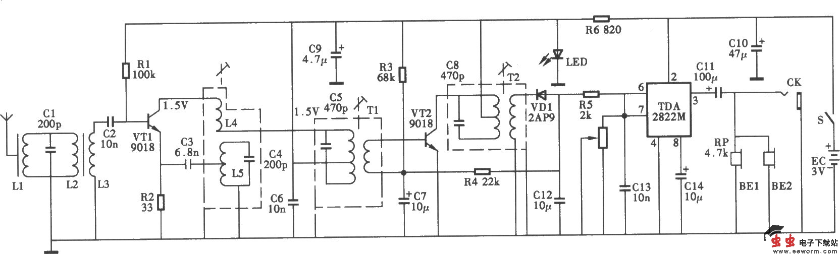 宏声GY9601-3型无线耳机电路