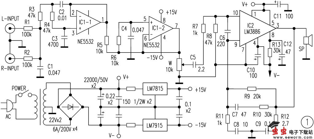 LM3886低音炮电路