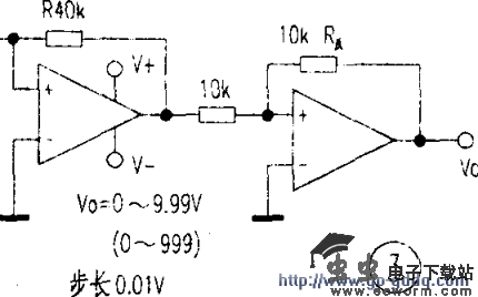 (10+20+40+80)],便可构成两位十进制BCD码数模转换器。其实,用电阻并联的方法分析,也可得出上述结论。