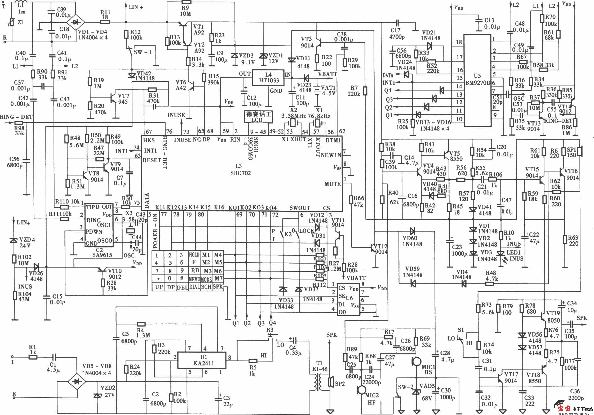 德赛HCD1218(26)P/TSDL型来电显示电话机电路