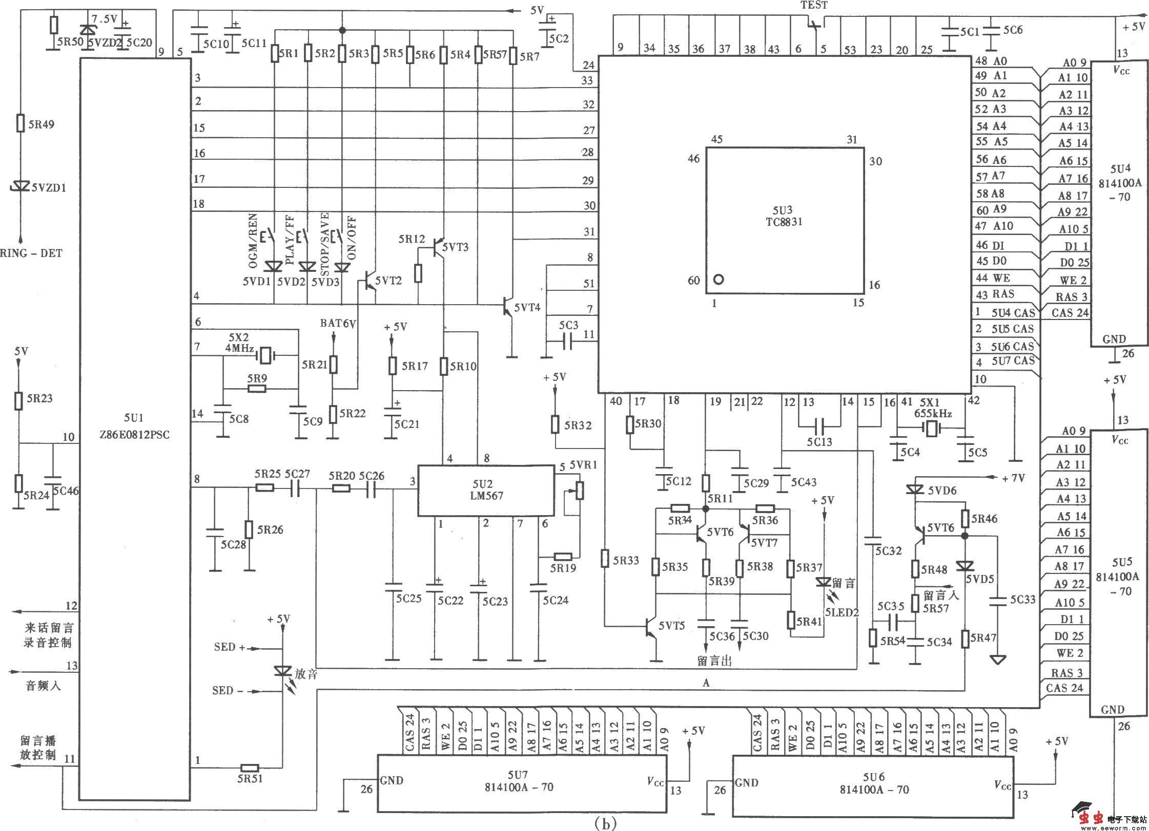 美信通HL9918(5)P/TDL(LCD)型数字录音电话机电路(b)