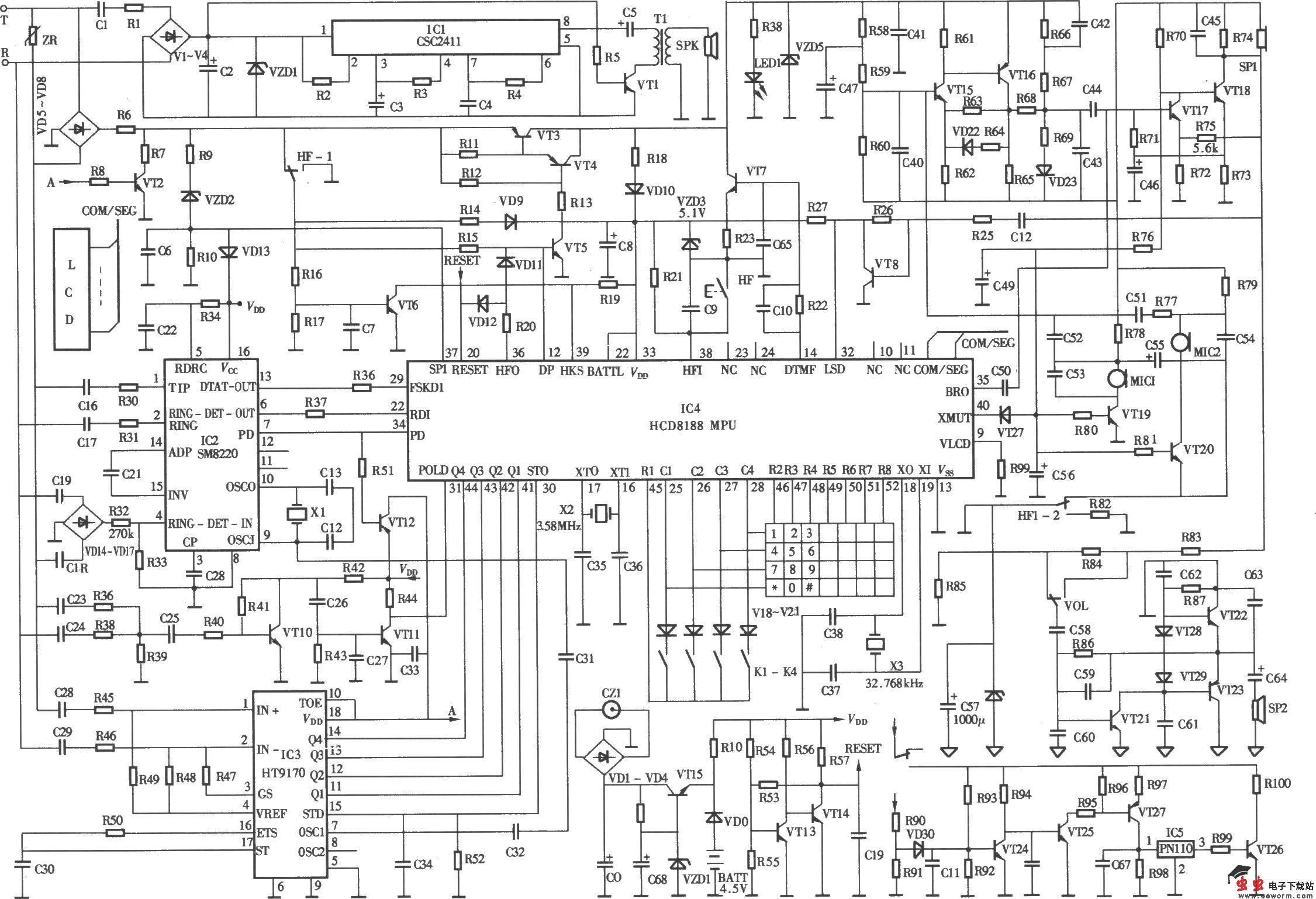 侨兴HCDSl88(1)P/TSDL型来电显示电话机电路