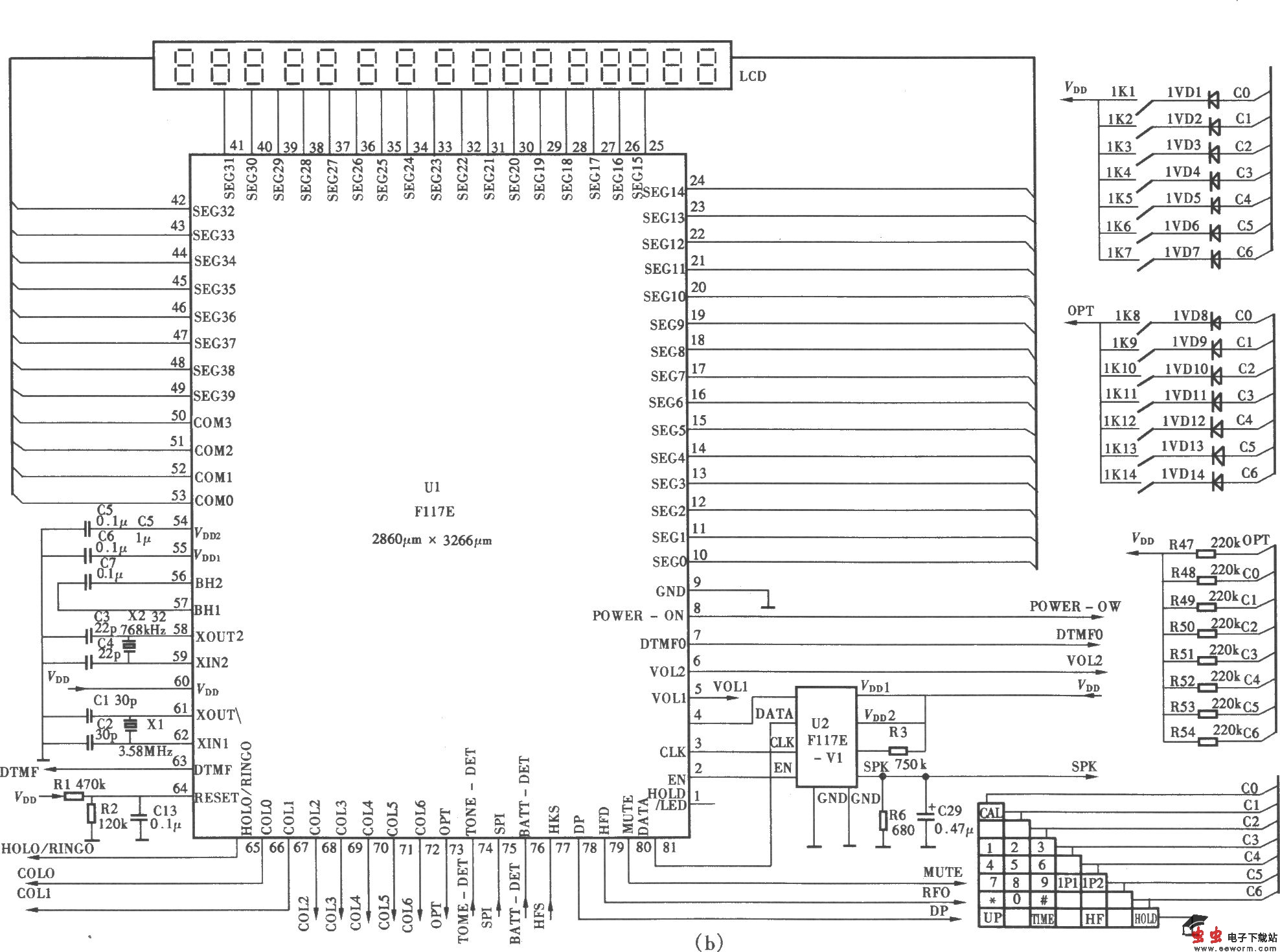 渴望HCD(15E)p/TSDL型来电显示、语言报号多功能电话机电路(b)
