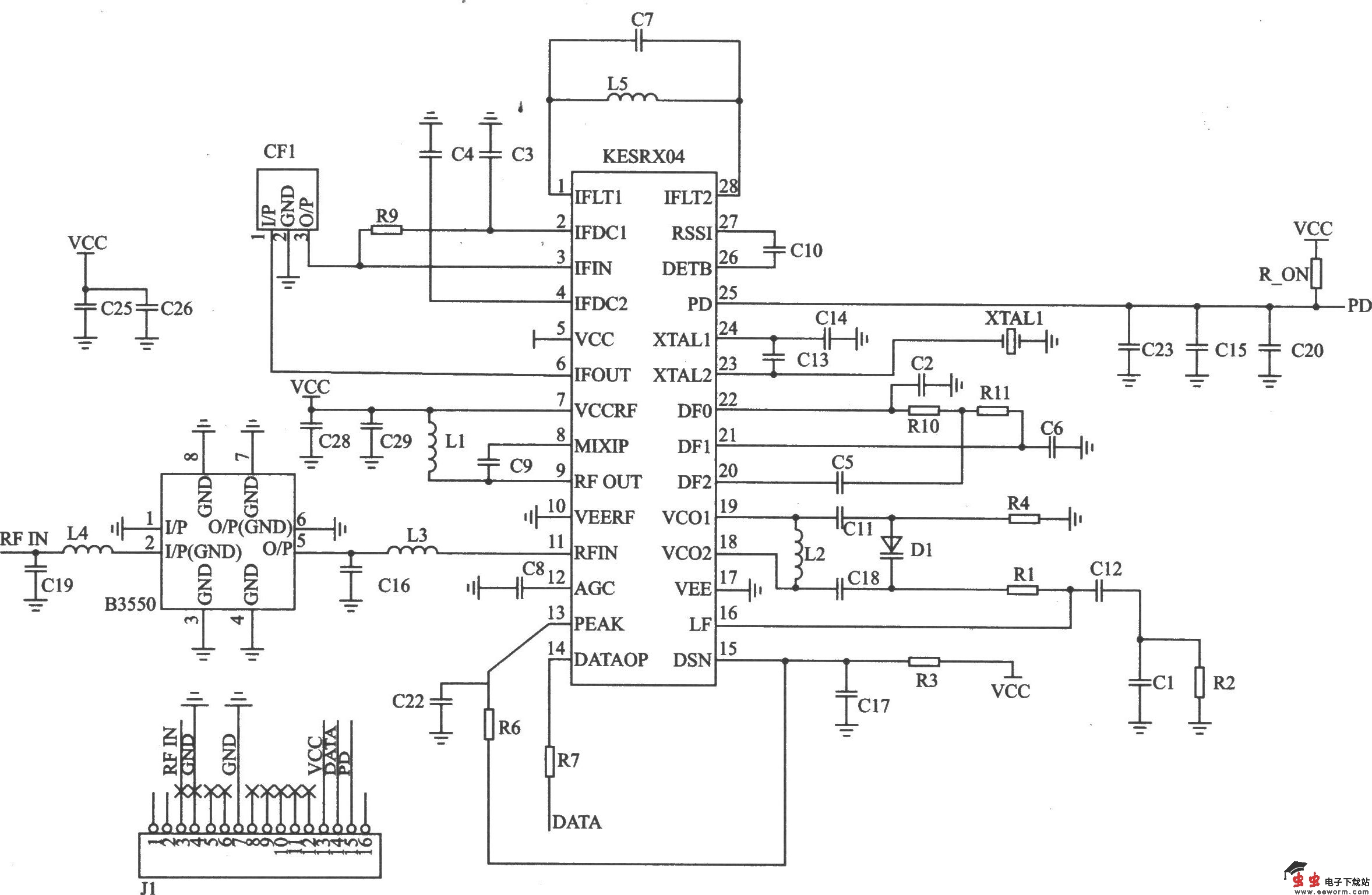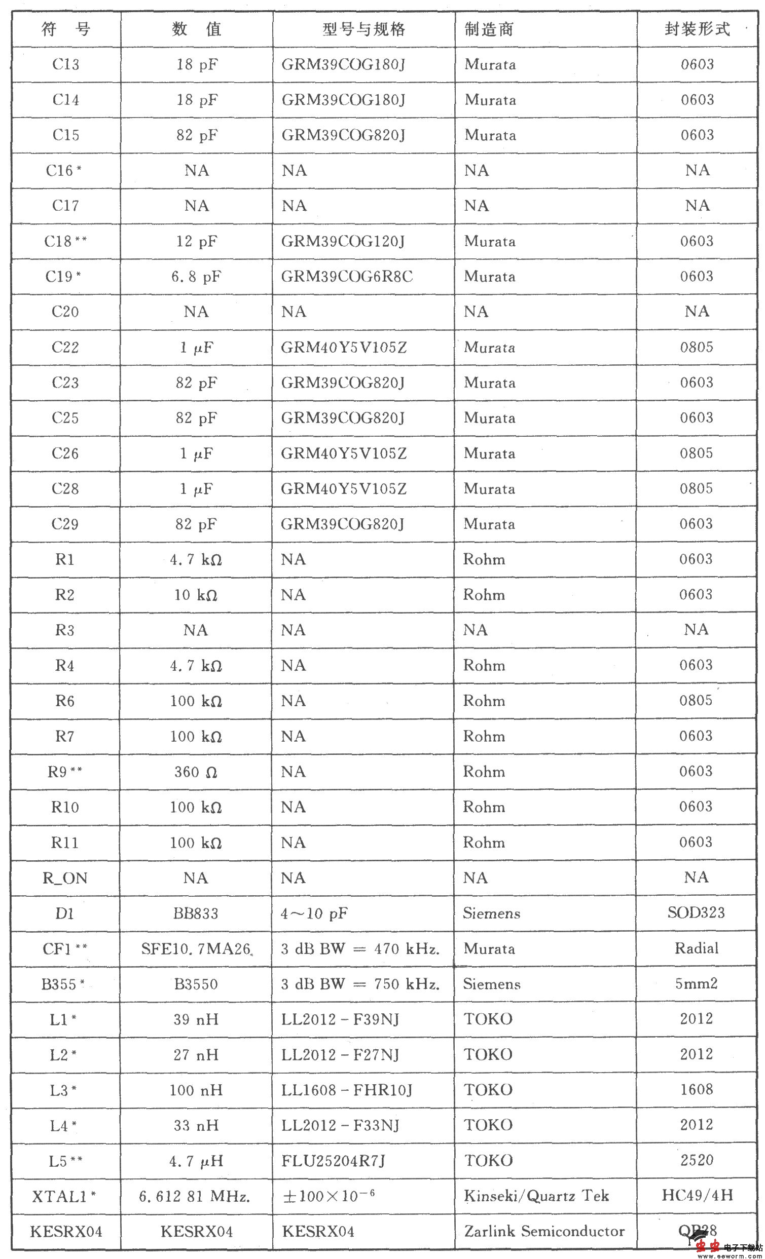 KESRX04的10.7 MHz中频接收电路 KESRX04的10.7 MHz中频接收电路元器件参数