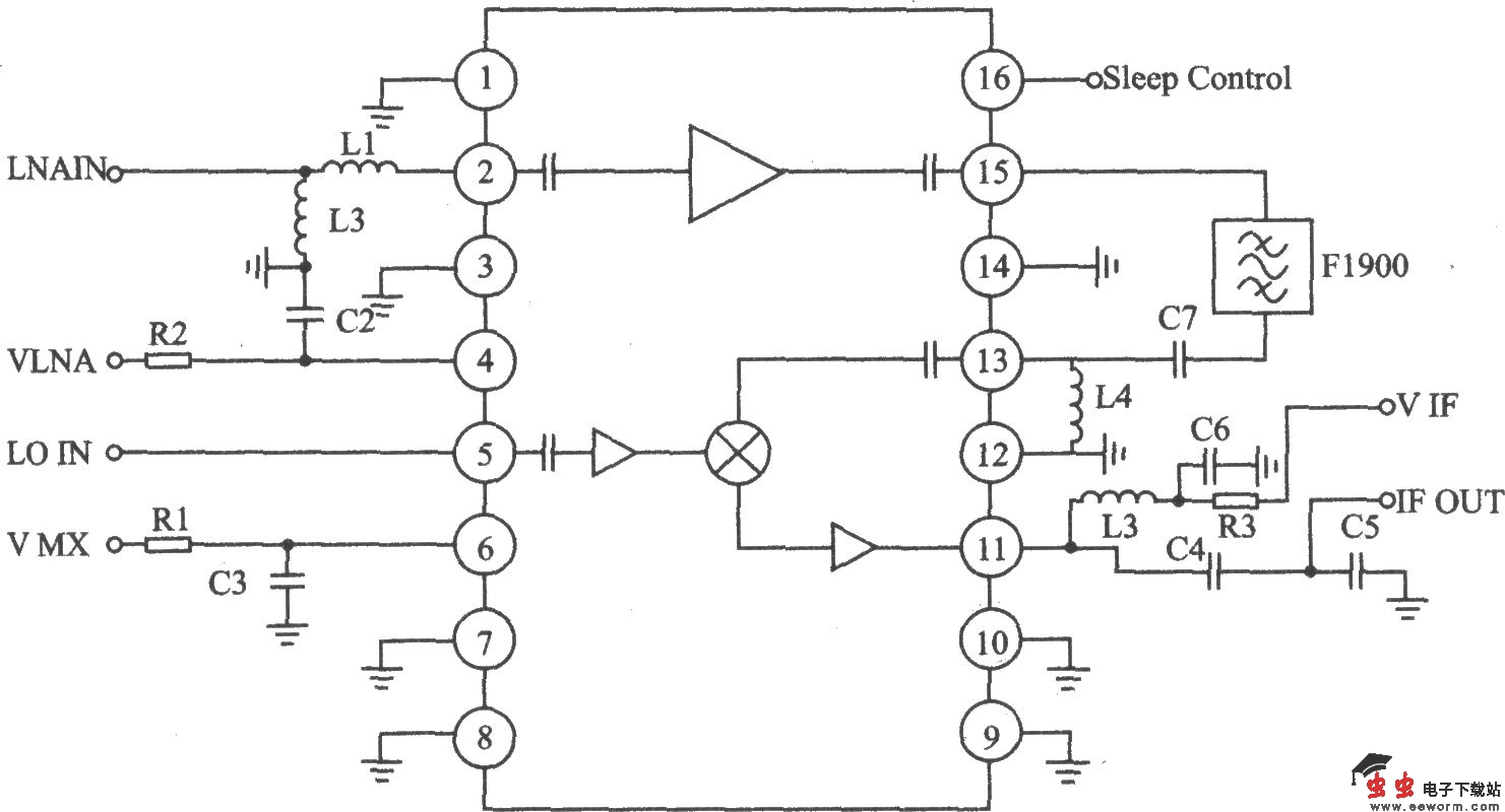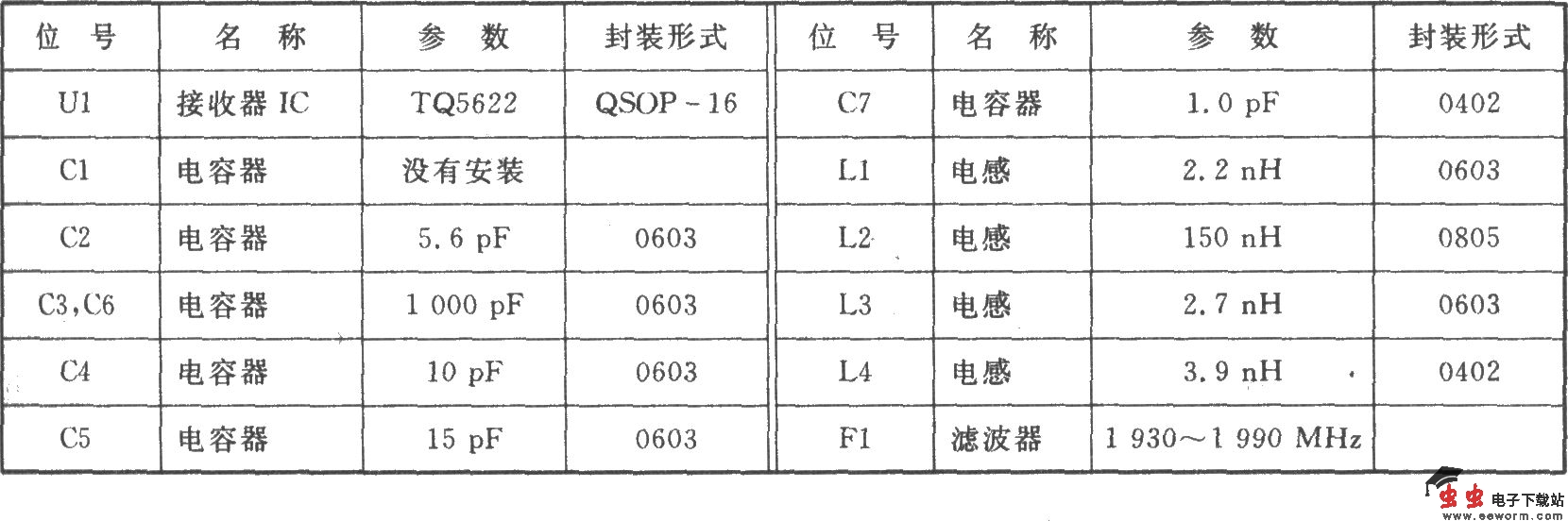 TQ5622是3 V RF接收器芯片,是专门为PCS频段TDMA移动电话应用而设计的,性能满足IS-136 TDMA标准,适应PCS频段TDMA移动电话应用。 主要技术特点如下: ·工作频率为1930~1990 MHz; ·低噪声放大器(LNA)输出和滤波器输入内部匹配,使得设计简单,使用外部元件少; ·增益为l7.5 dB; ·噪声系数为2.8 dB; ·输入第3截点为-9 dBm; ·单电源(2.8 V)工作; ·直流电源电流为l2.0 mA,睡眠模式电流为l00μA; ·功率消耗为500 mW。