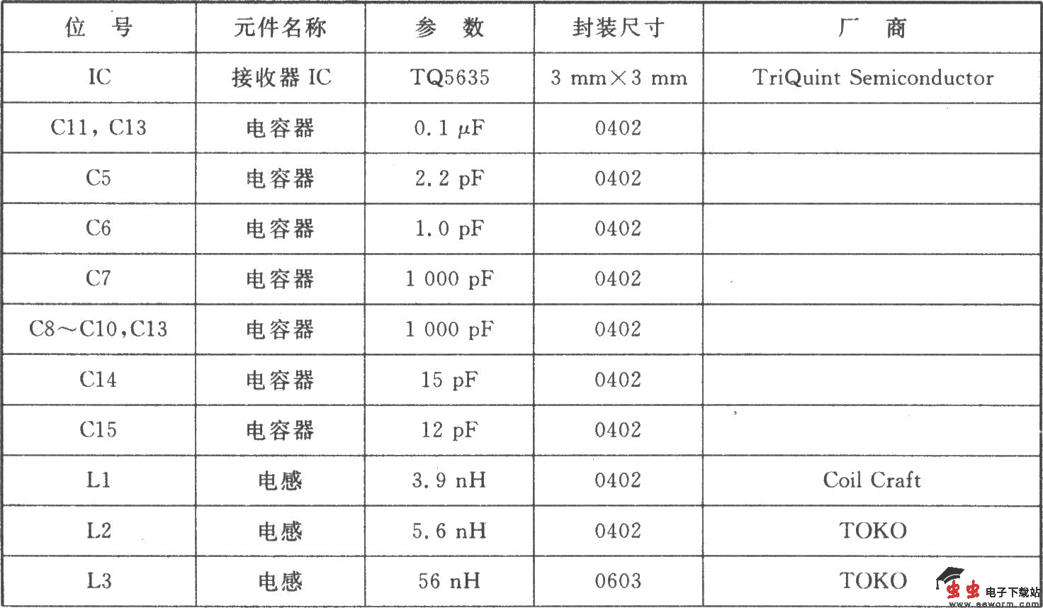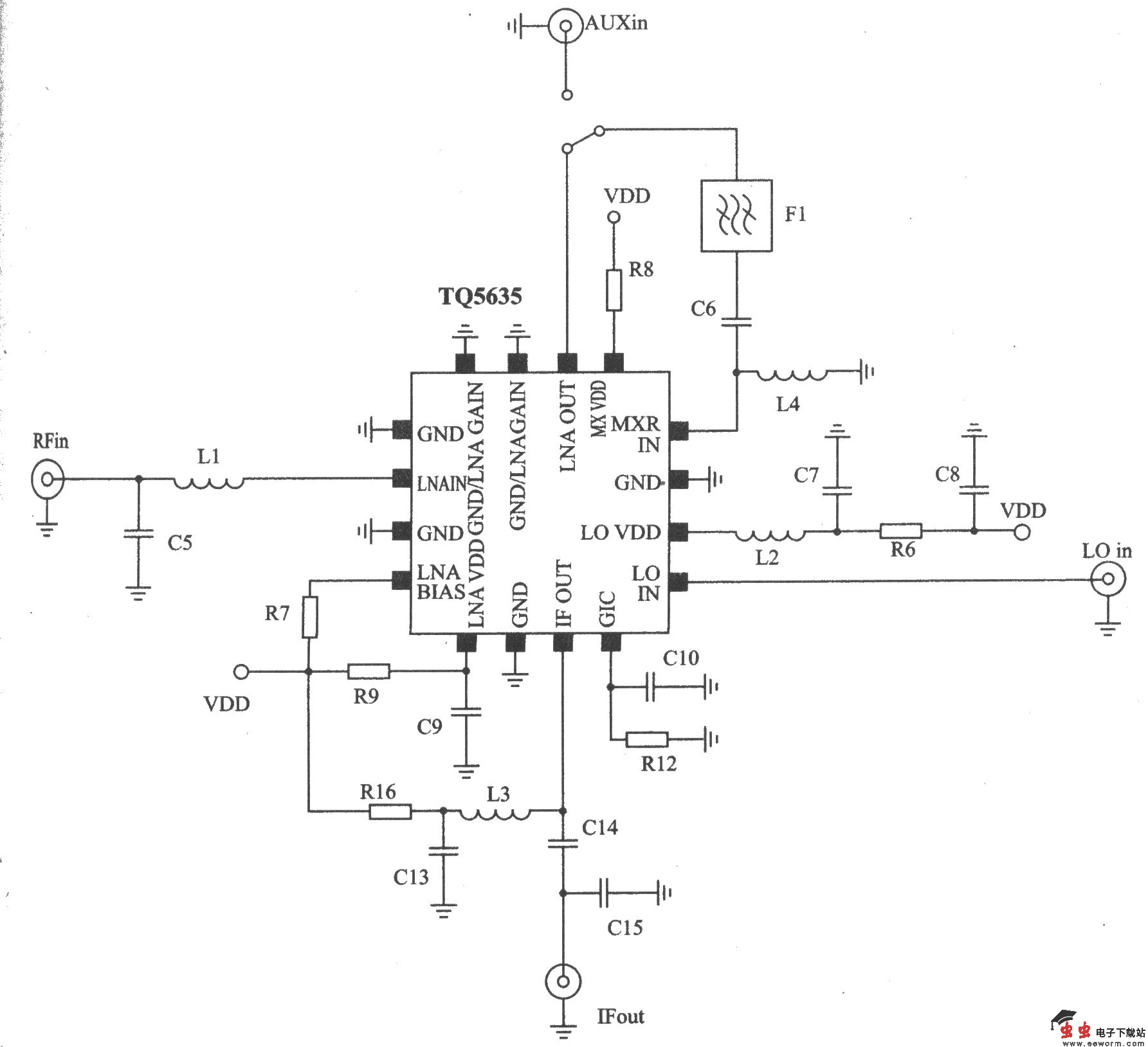 TQ5635应用于CDMA KPCS的典型测试电路 TQ5635测试电路的元器件