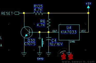 由KIA7033构成的单片机复位电路,可手动复位,效果理想。