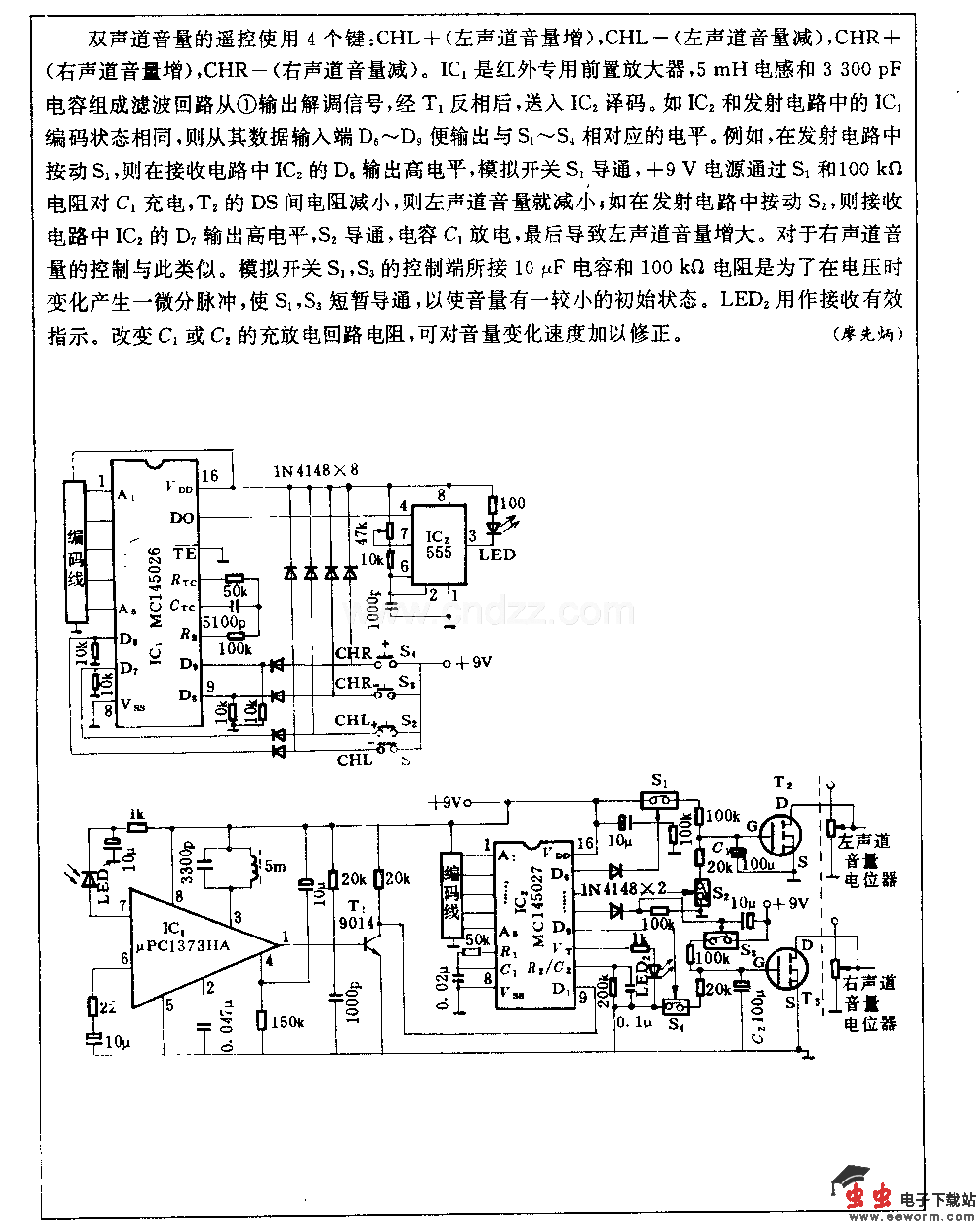 双声道红外音量迢控电路