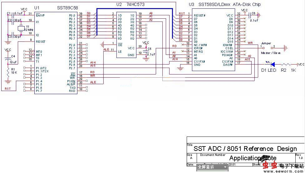 使用SST89C58控制单片电子硬盘的硬件电路