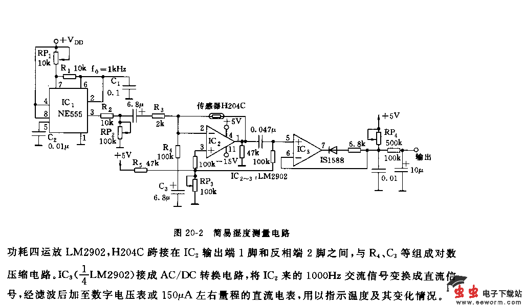 简易湿度测量电路