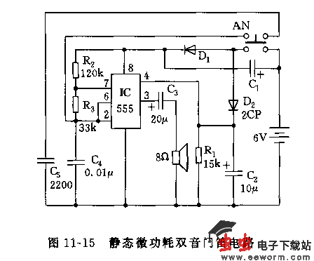静态微功耗双音门笛电路