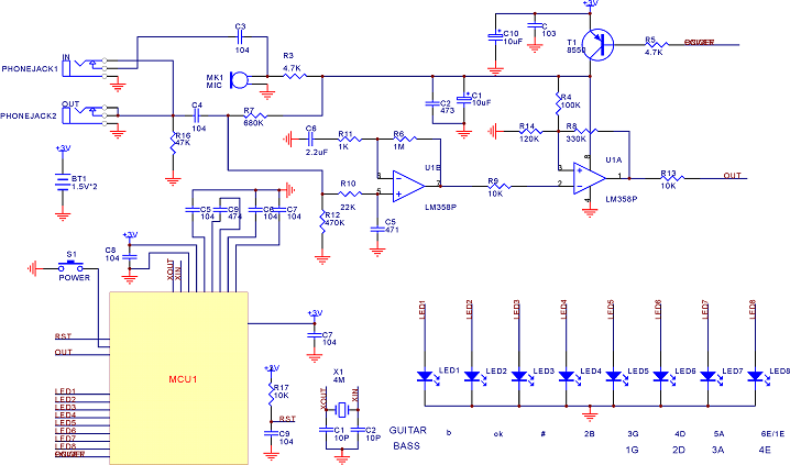 吉他跟贝司校音器电路