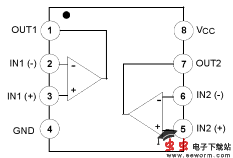 LM358里面包括有两个高增益、独立的、内部频率补偿的双运放,适用于电压范围很宽的单电源,而且也适用于双电源工作方式,它的应用范围包括传感放大器、直流增益模块和其他所有可用单电源供电的使用运放的地方使用。