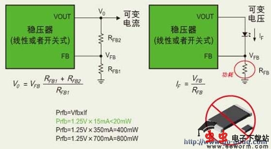 一般来说,DC/DC稳压器对VFB的变化有一个感知的范围,一旦LED选定,其工作电流IF的大小也就确定了,所选的电阻要保证VFB落在DC/DC稳压器容许的范围内。