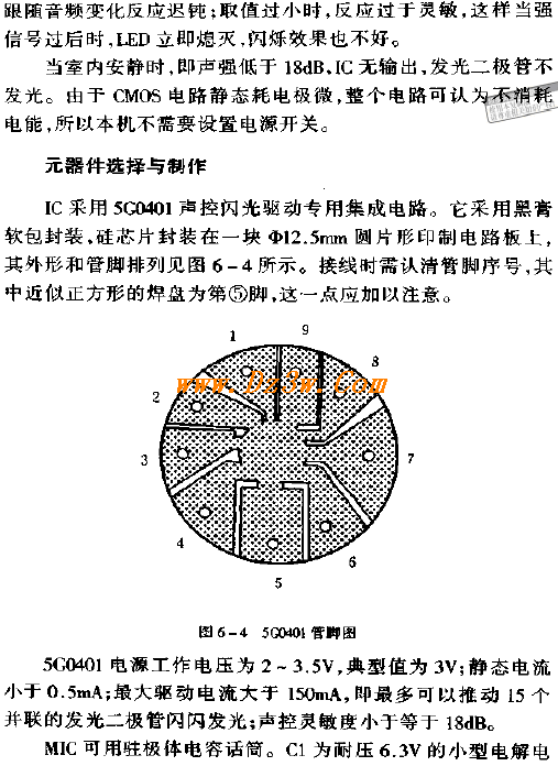 声控眨眼长毛绒玩具电路 在音响的喇叭箱上放置一个活泼可爱的长毛绒狮子狗,当喇川戈播放音乐时,狮子狗的两眼就会随音乐节奏而闪闪发光,既有趣又富有装饰性,这是一个声控眨眼玩具。 工作原理 声控眨眼长毛绒玩具的电路如图6-3所示。