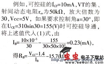 由于可控硅的触发电流Igt以及三极管VT的β、rce的离散性很大,使Rb的取值十分困难,必须测量出上述参数的实际值,再计算出Rb,然后在试验中微调。