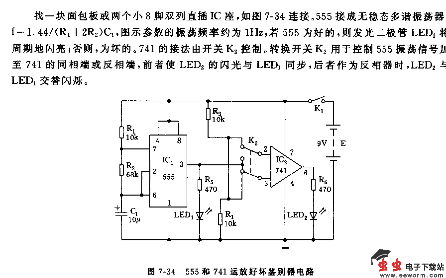 555和741运放好坏鉴别器电路