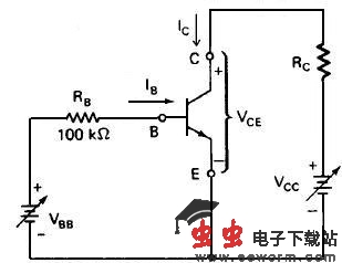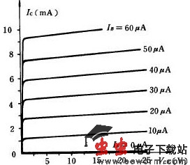 图1 NPN 三极管共射极电路 图2 共射极电路输出特性曲