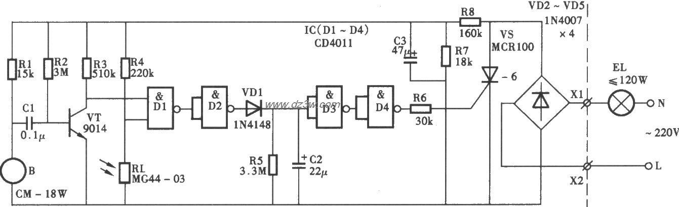 声光双控照明灯电路 声光双控照明灯电路(一) 声光双控照明灯电路(二)