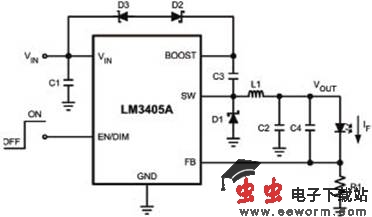 常见的MR16 20W-35 W的卤素灯很容易被同等外形尺寸的 LED 灯所替换。在图 1 的设计示例中,驱动高亮度LED的600mA恒流来自常规电子变压器的 12V 交流电源。由于 LM3405A 驱动器的工作电压范围较宽,一个非常小的输入电容器即可维持连续运行。高开关频率内部设置为 1.6MHz,允许使用极小的表面贴装电感器和贴片电容器。所有这些因素都有助于压缩 PCB 的整体尺寸,以满足MR16外形规格对空间的严格限制。