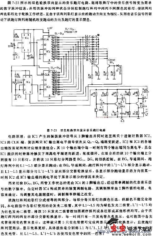 双色轮换双向显示音乐跑灯电路