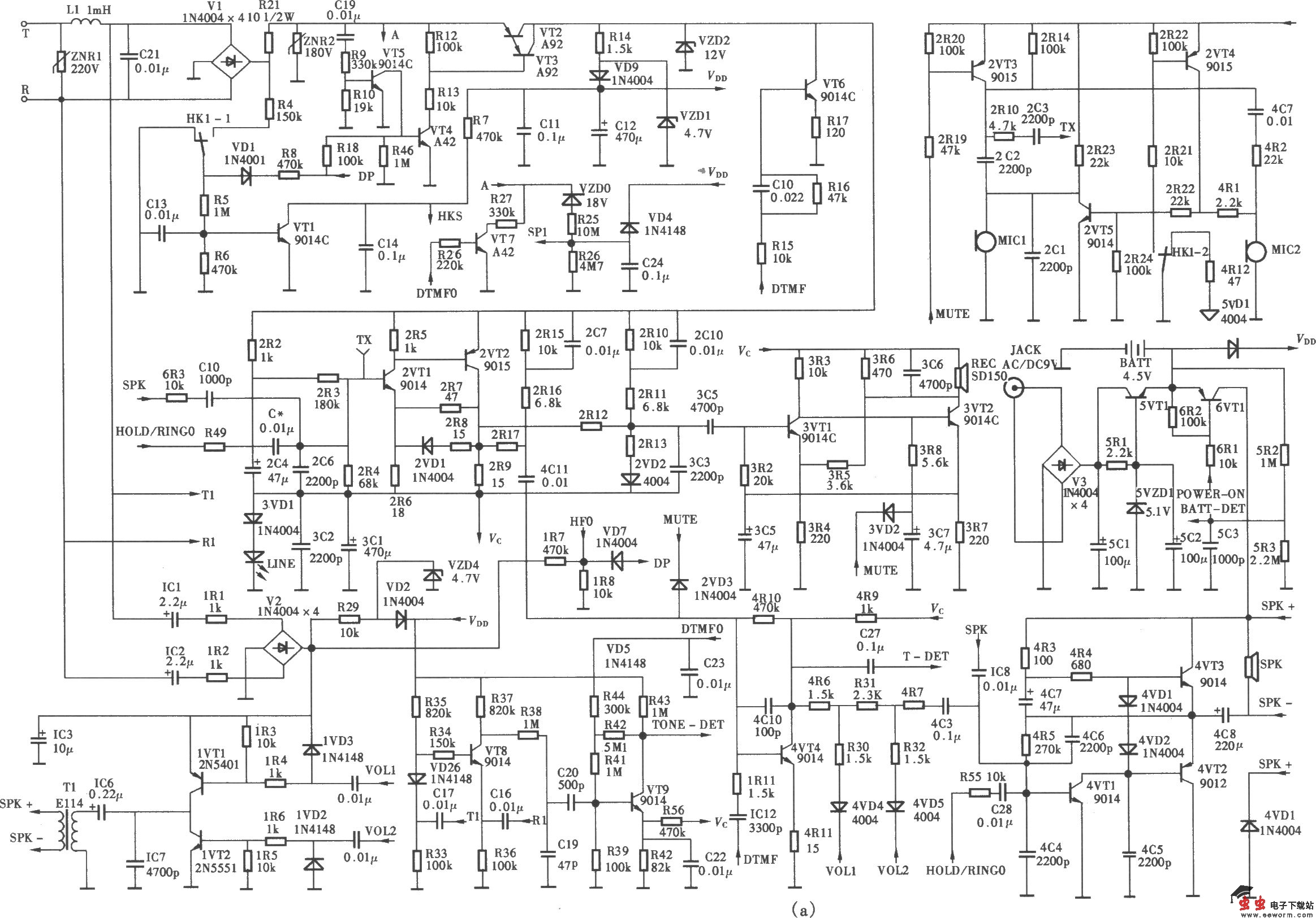 渴望HCD(15E)p/TSDL型来电显示、语言报号多功能电话机电路(a)