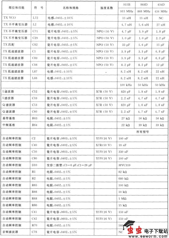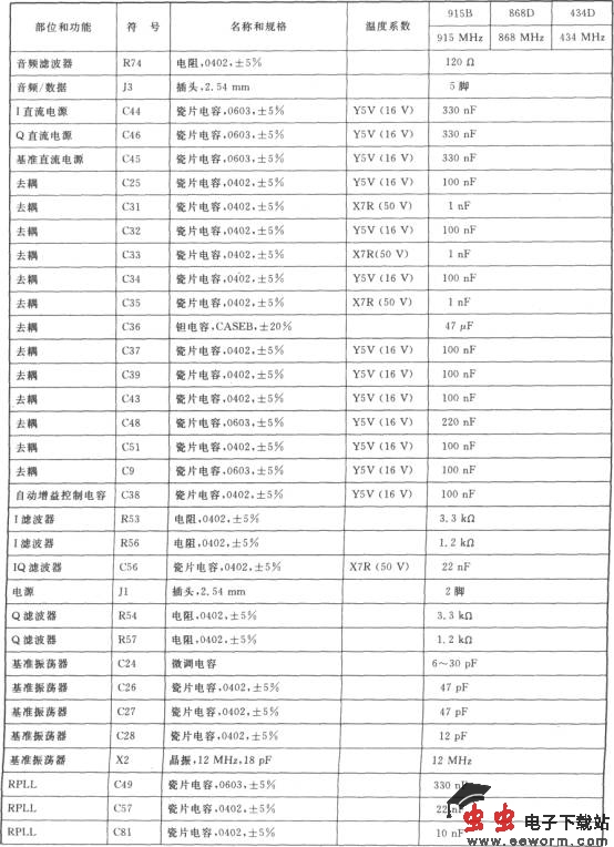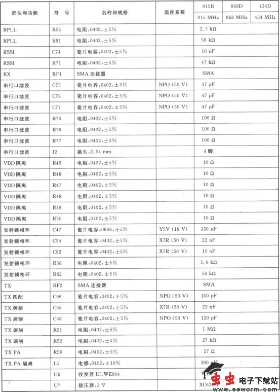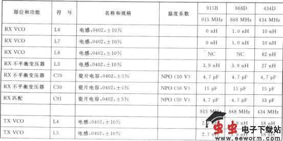 WE904开发板电路原理图 WE904开发板不同频率的元器件参数