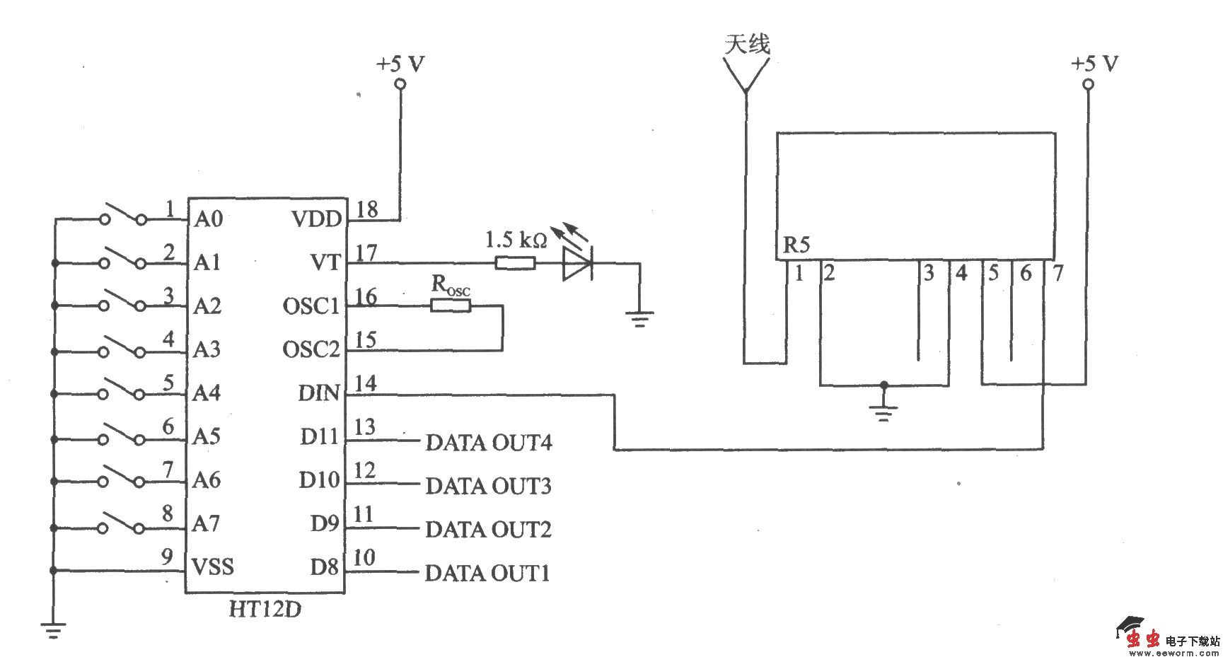 R5是英国RF Solutions公司开发的一款微型的UHF接收器模块,与发射器模块T5配套使用,接收距离可达300 m以上。它适合一对一或多点无线连接应用,如车辆的报警系统、库房大门的遥控开启、家庭和商贸安防系统等领域。 主要技术特点如下: ·工作频率为433.92 MHz; ·灵敏度为-l05 dBm; ·IF带宽为230 kHz; ·片内AGC控制,有信号强度指示输出,数字和模拟信号输出; ·电源电压为4.5~5.5 V; ·最大工作电流为6 mA。