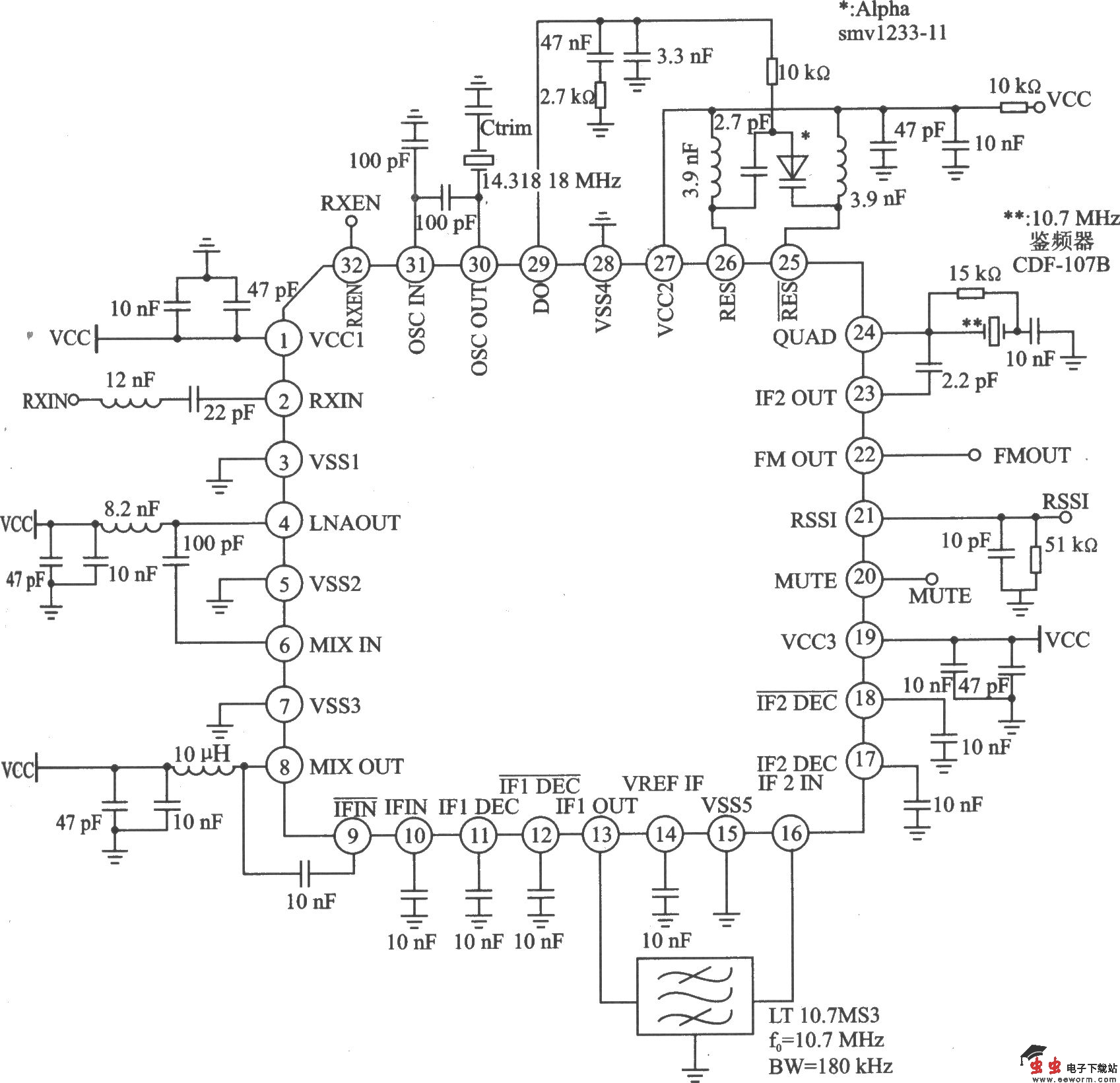 RX3930应用电路(906 MHz)