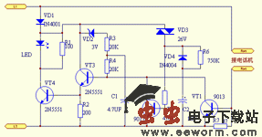 VT1、VT2可用9011、9013等硅NPN三极管,放大倍数大于60;VT3、VT4最好采用2N555等硅NPN三极管,放大倍数大于60。VD1、VD4采用IN4004整流管,VD2采用3V、1/2W型稳压二极管。VD3采用击穿电压为26V的双向触发二极管。LED采用普通红色发光二极管。
