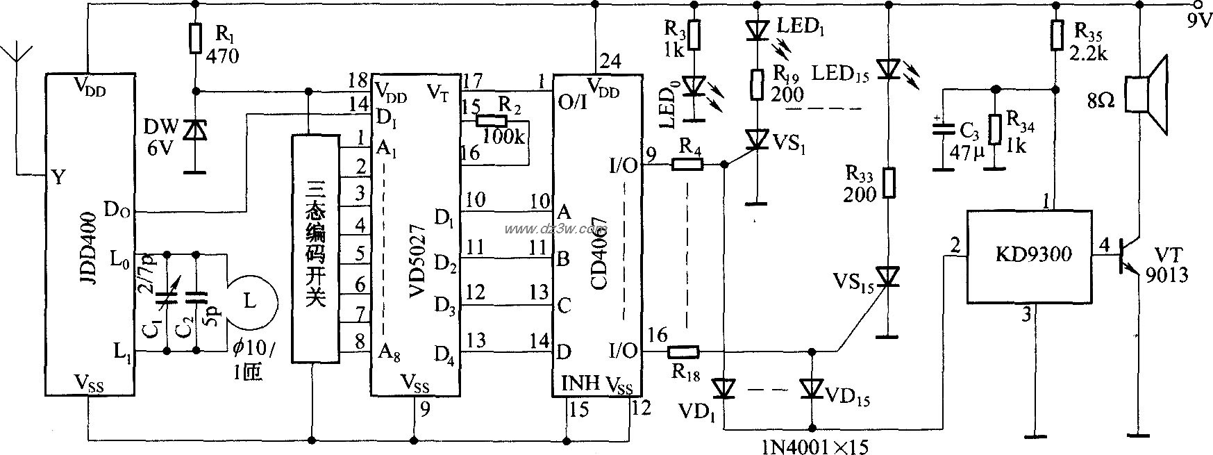 热释电探测无线接收电路: