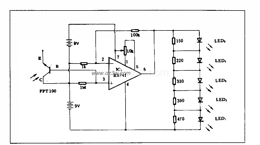 用发光二极管显示的照度计电路