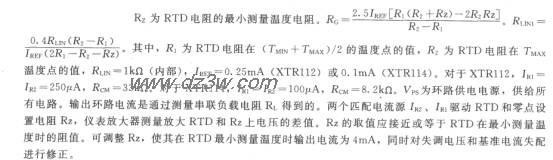 如图所示为XTR112/114基本两线RTD温度测量电路。