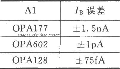 如图所示为由INA118构成的差动电压-电流变换器。INA118的输出经由R1及A1构成电流源,因运算放大器输入阻抗极高、偏流极小,与输出至负载的电流相比可忽略不计,因此输出电流Io可以看作是恒定的,只与输入电压和R1有关,即Io=(VIN/R1)×G。A1选型及IB误差见下表。电流源输出电流Io在一定范围内与负载无关,只取决于输入电压和电阻R1,当R1固定时,输出电流只与输入电压VIN有关,即可完成差分电压-电流变换。