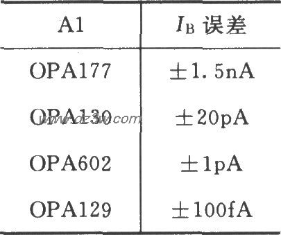 如图所示为由INA126构成的差分电压-电流变换电路。INA126的输出经R1及A1构成电流源,因运算放大器输入阻抗极高、偏流极小,与输出至负载的电流相比可忽略不计,因此输出电流Io可以看作是恒定的,只与输入电压和R1有关。Io=(VIN/R1)×G。A1选型及IB误差见下表。图中虚线连接为INA2126(16脚封装)的Sensn端连到Vo输出端,用于检测输出电压变化。电流源输出电流Io在一定范围内与负载无关,只取决于输入电压和电阻R1,当R1固定时,输出电流只与输入电压VIN有关,即可完成差分电压-电流变换。