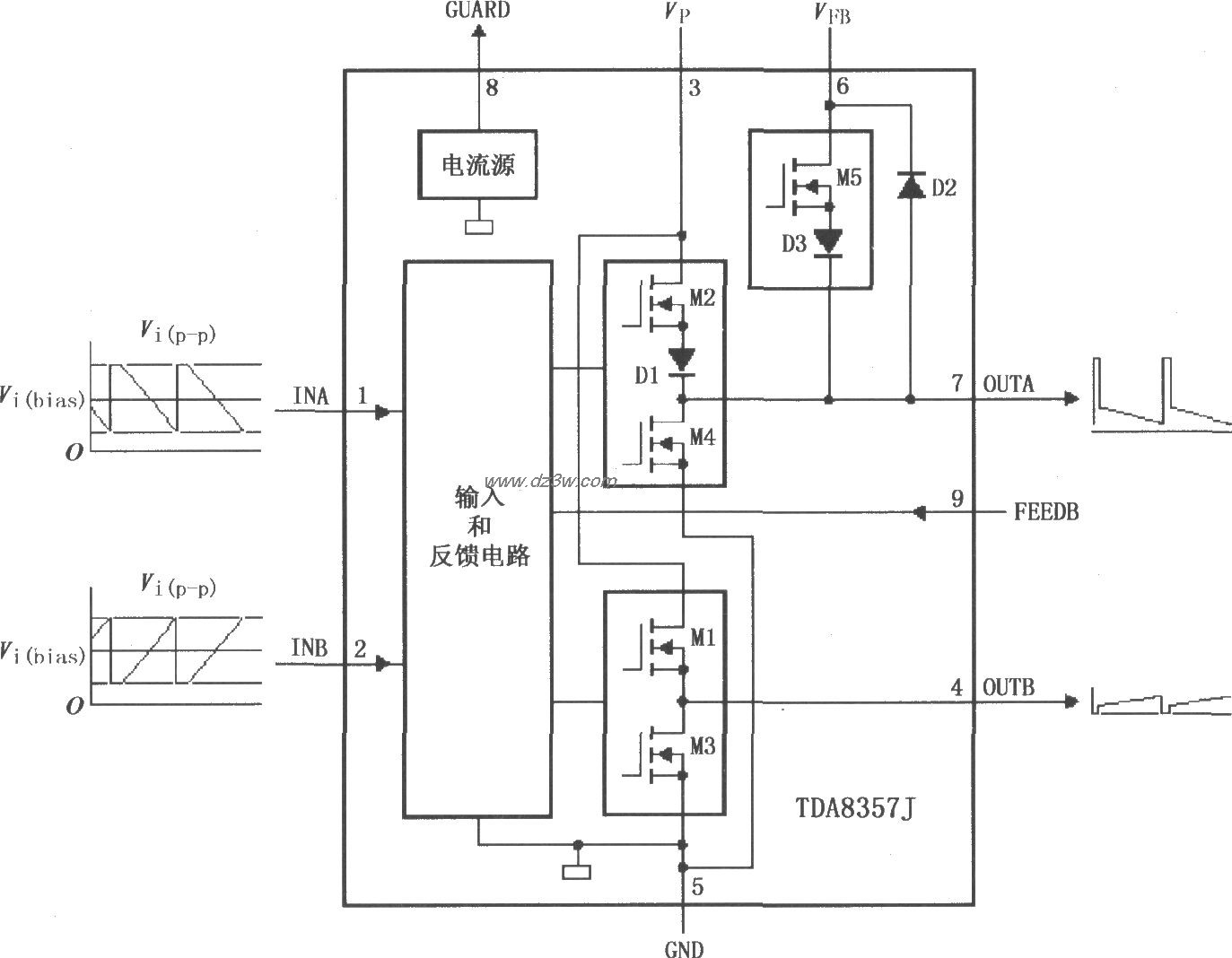 内部功能电路与输入输出波形: