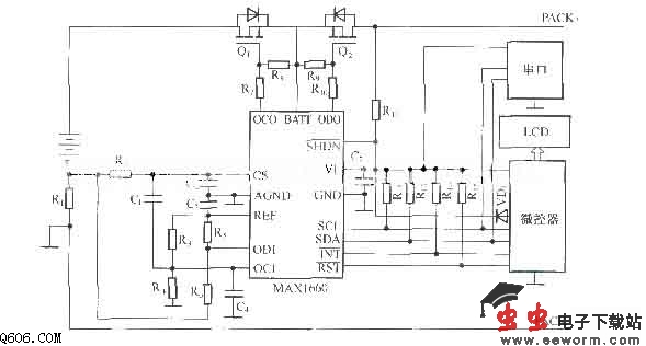 本电路作为一个便携式嵌入系统的附属电源模块,由于系统成本限制,采用了镍氢电池.MAX1660既可以监控锂离子电池又可监控镍基电池,而其他类型电池监控芯片一般为锂离子电池监控芯片. 由MAX1660构成的系统。