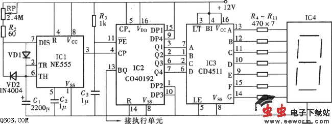 一位数显式定时器电路图