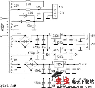 如图所示是巨大XL-SV8型VCD机电源电路。