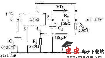 如图所示,下图是利用L200的2脚所具有的最大输出电流调控功能进行启动。这样,开机时,C2使2脚的电压不能突变,L200处于最小的电流输出状态。随着5脚通过R2对C2的充电,L200的输出电压才缓慢才升,按图中元件参数,输出电压达到额定值的时间为7s,也可以L200的基准端4脚延时接入R1来达到软启动的目的。