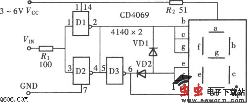 用门电路组成的文字显示型逻辑笔之一(CD4069)